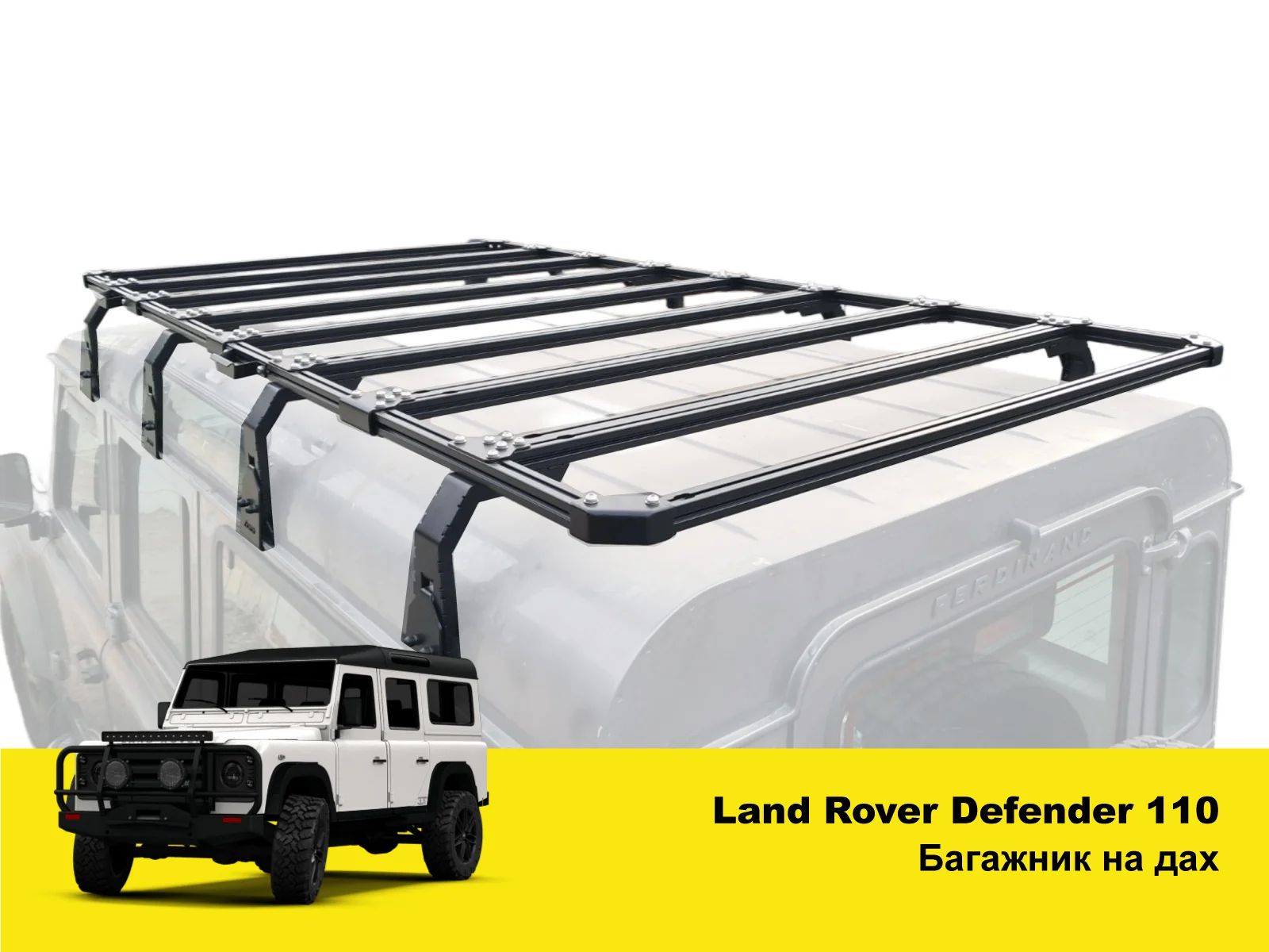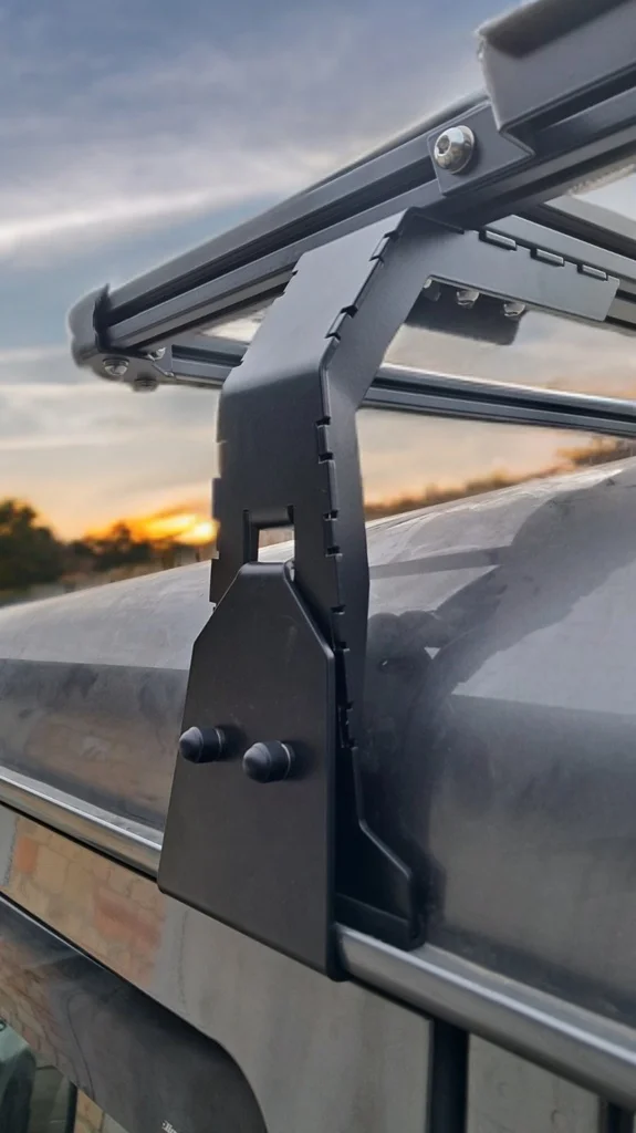 Багажник розроблений спеціально для автомобіля Land Rover Defender, що дозволяє встановити його без втручання у конструкцію автомобіля – кріплення точно відповідають штатним отворам, забезпечуючи надійну фіксацію та зберігаючи цілісність кузова. Процес складання багажника простий і не потребує спеціальних інструментів, дозволяючи швидко підготувати автомобіль до поїздки.