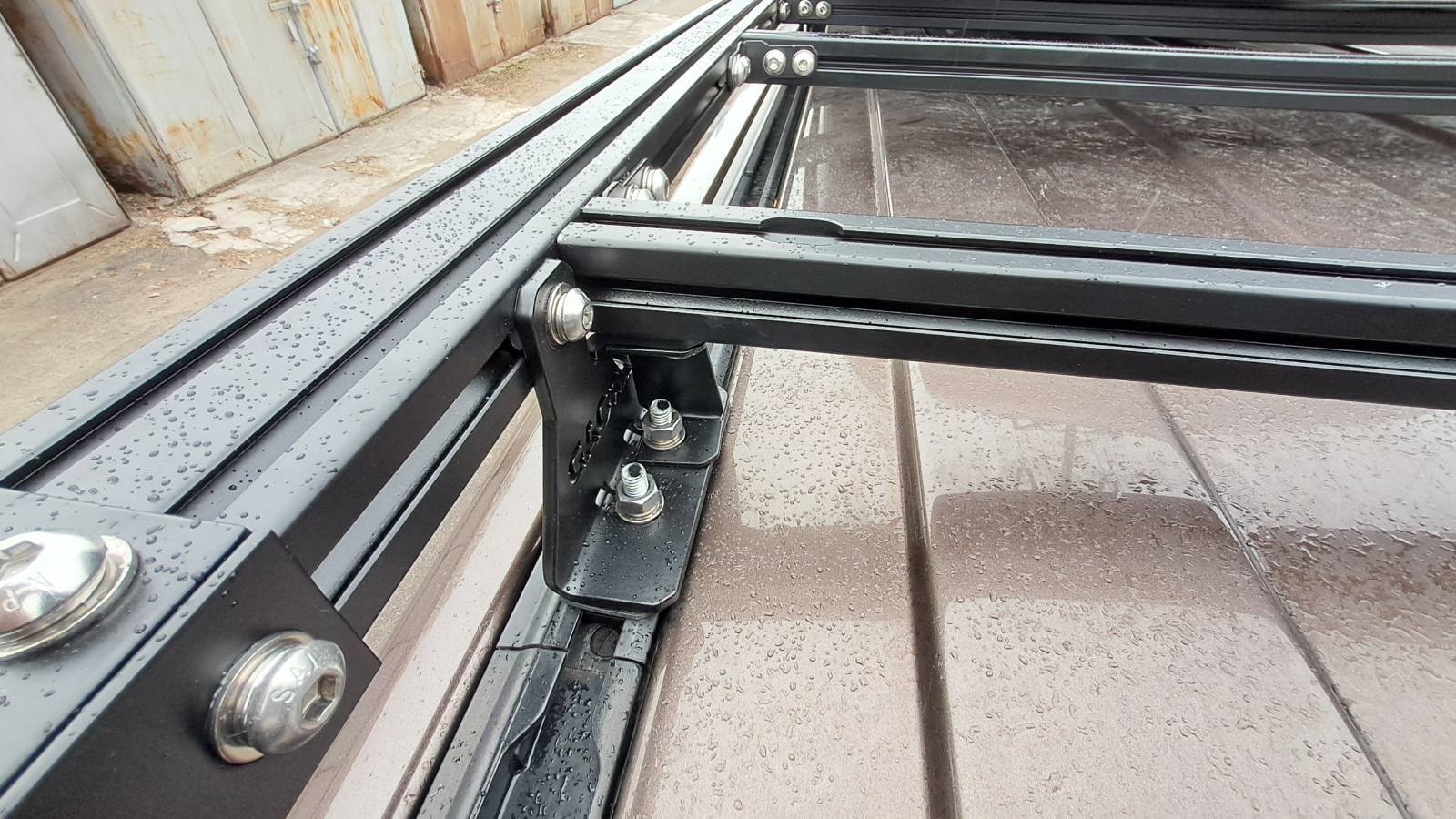 Багажник виконаний із комбінації надійних матеріалів. Алюмінієвий профіль забезпечує легкість конструкції, а сталеві кронштейни гарантують надійне кріплення та витримують значні навантаження. Всі металеві деталі оброблені цинковою ґрунтовкою та покриті порошковою фарбою, що гарантує захист від корозії навіть в екстремальних умовах експлуатації.