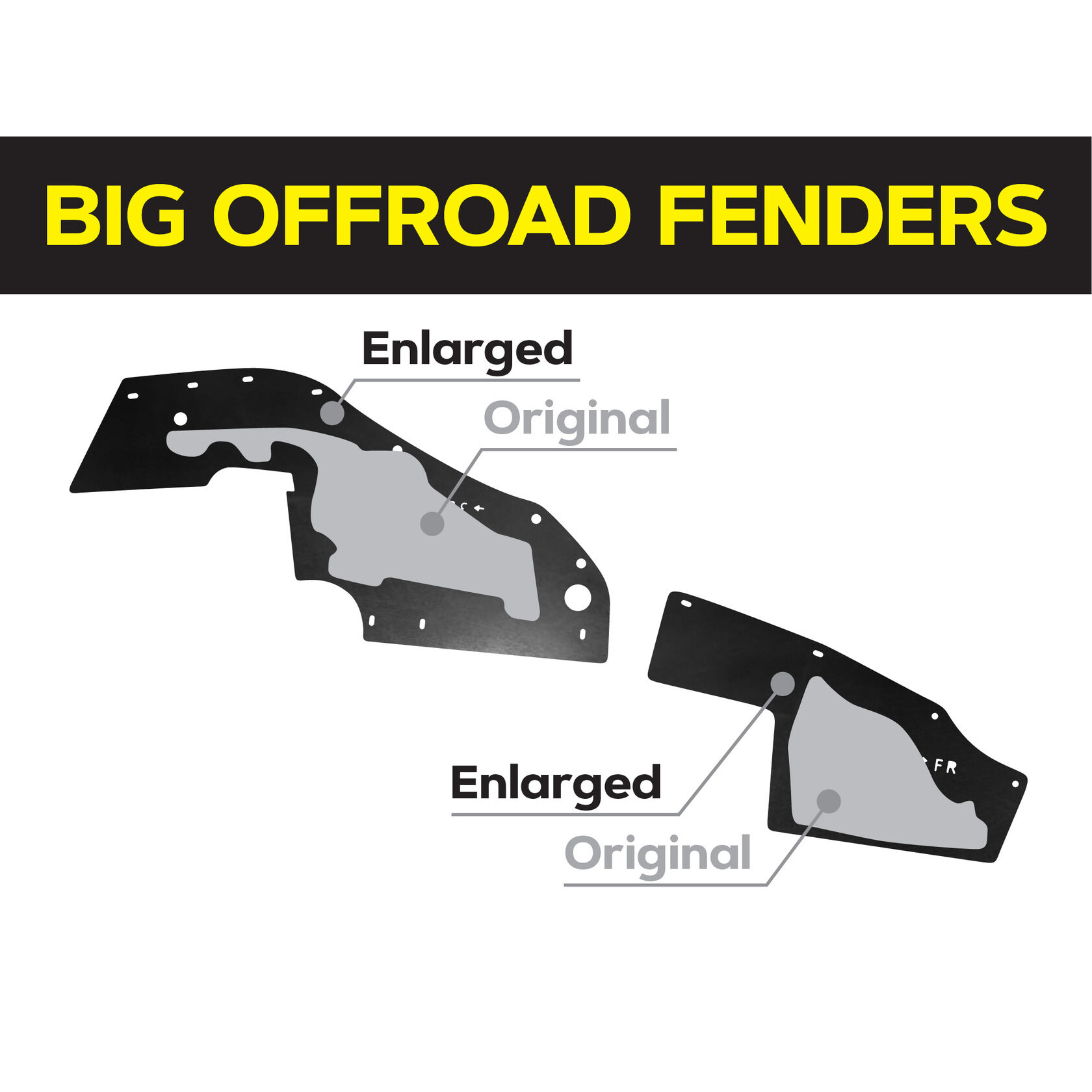 Повний комплект посиленого брудозахисту моторного відсіку для встановлення на передню вісь автомобіля. Площа посиленого брудозахисту значно більша за штатний, що дозволяє йому ефективно захищати не тільки моторний відсік, але й важливе електрообладнання, таке як генератор і стартер. Цей посилений брудозахист розроблений спеціально для експлуатації як у міських умовах, так і на найскладніших позашляхових трасах