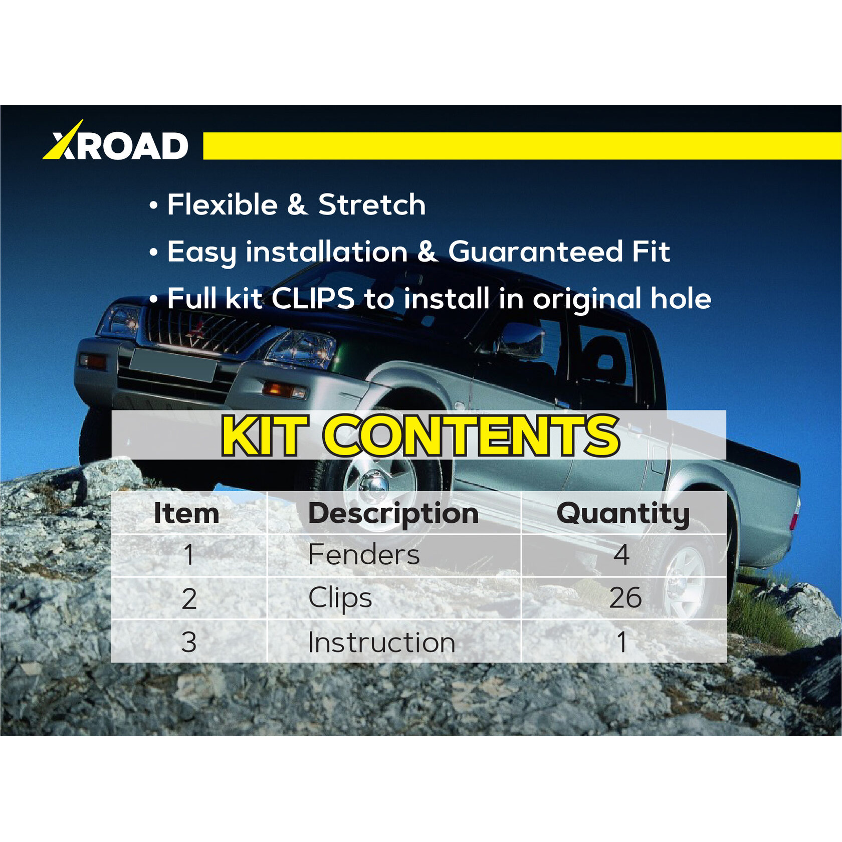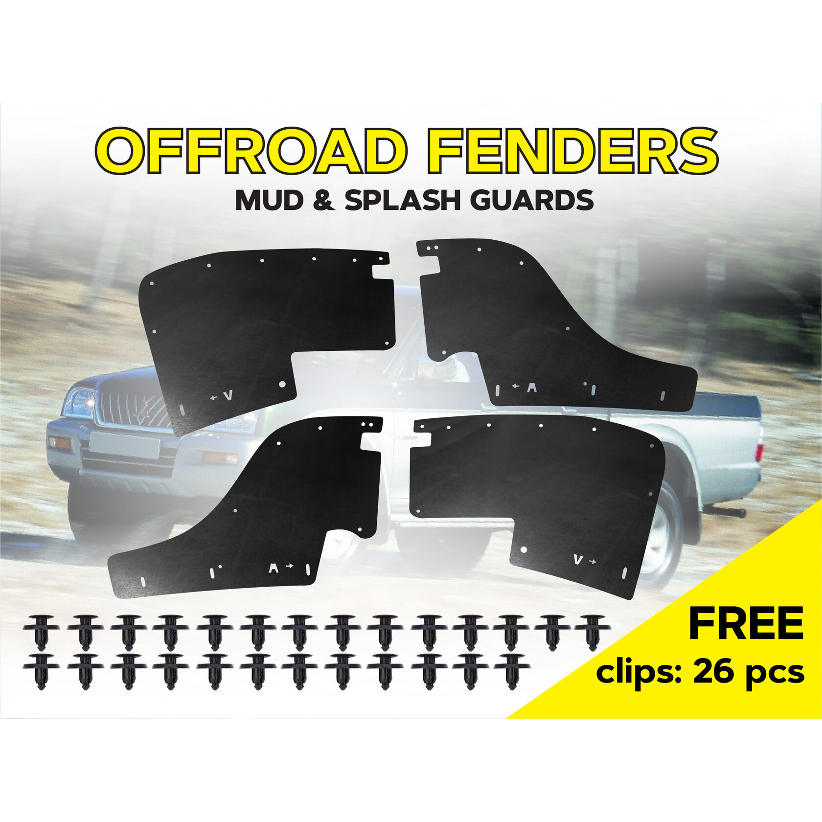 Склад комплекту: 4 посилених пильники для передніх колісних арок, монтажний набір кліпс, інструкція.