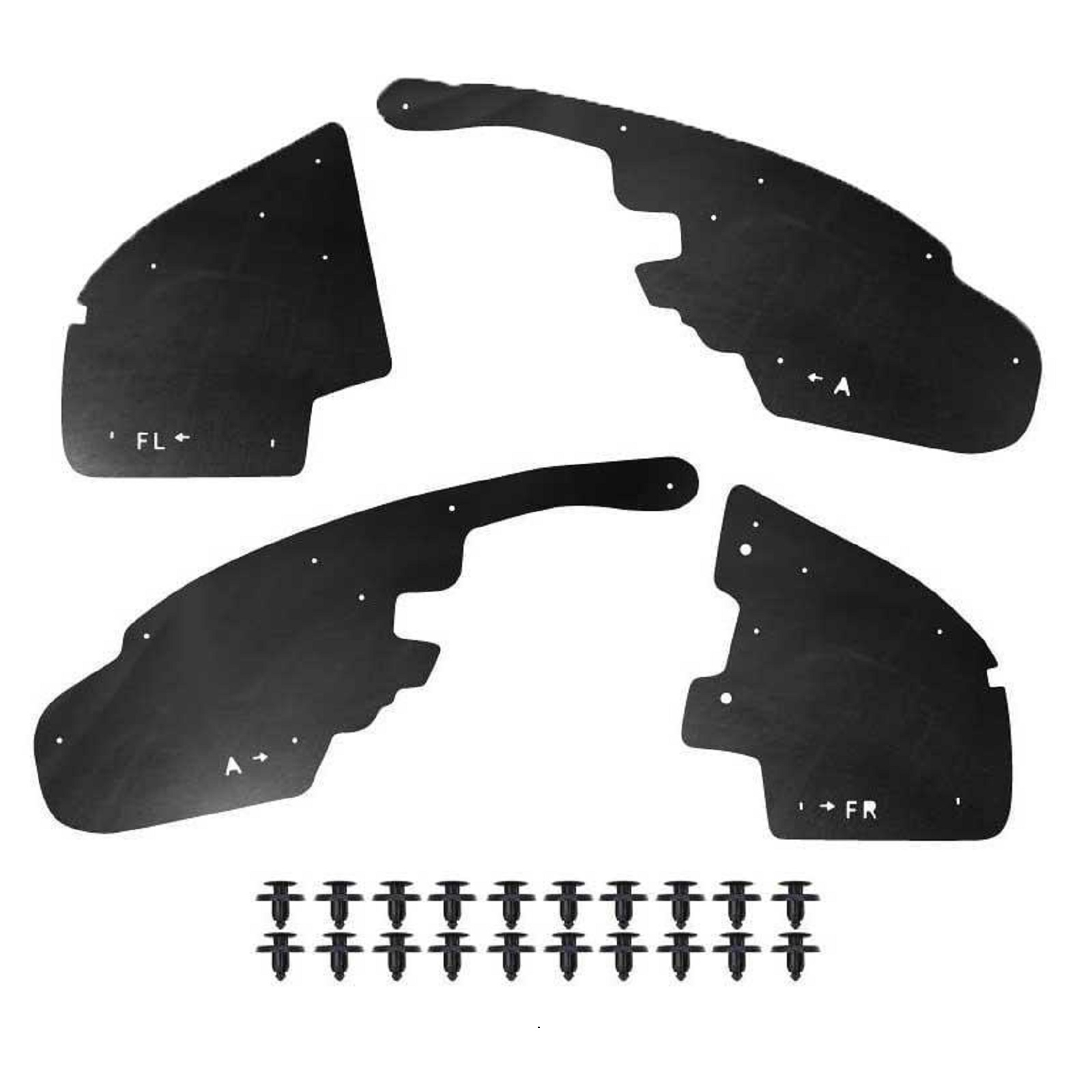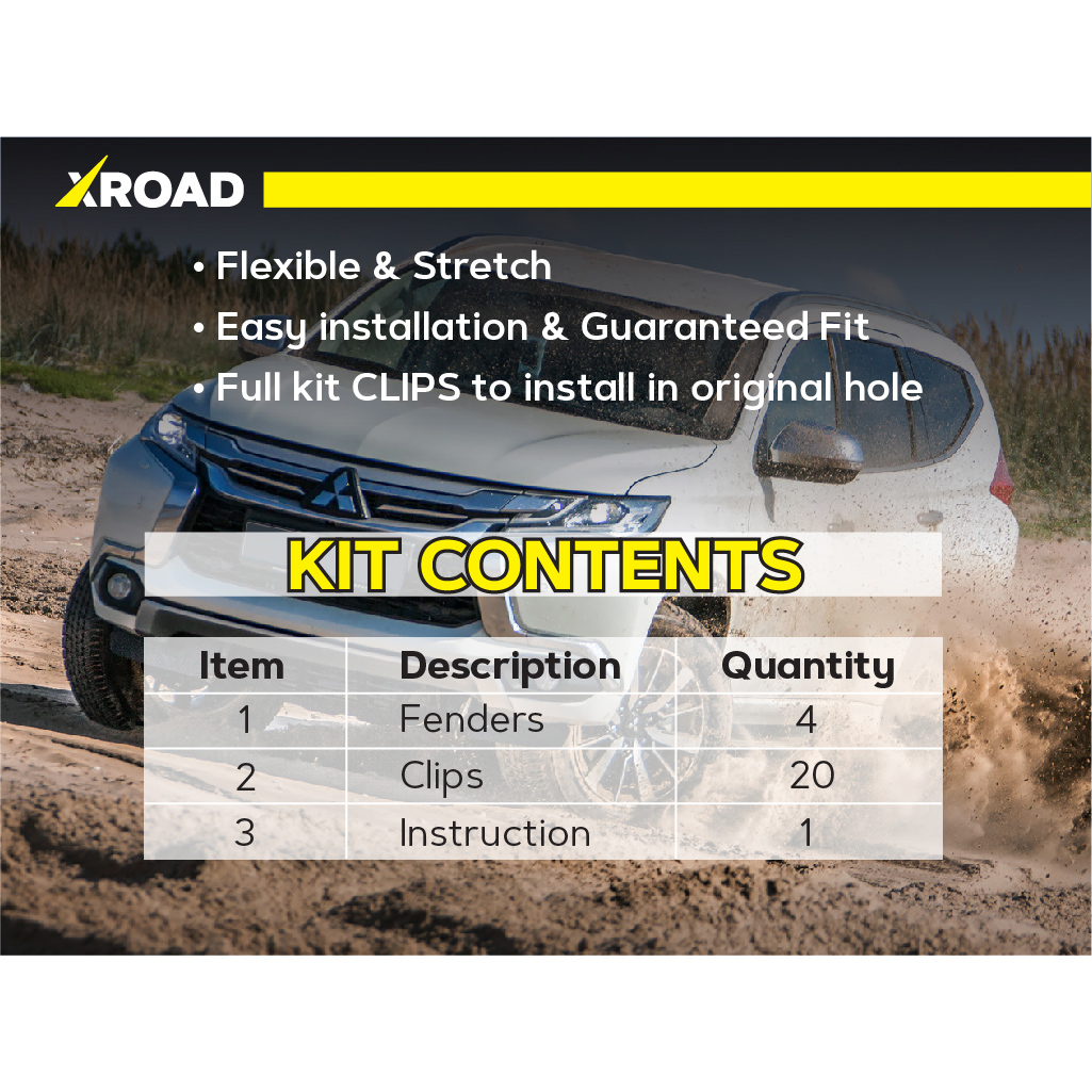Склад комплекту: 4 посилених пильники для передніх колісних арок, монтажний набір кліпс, інструкція.