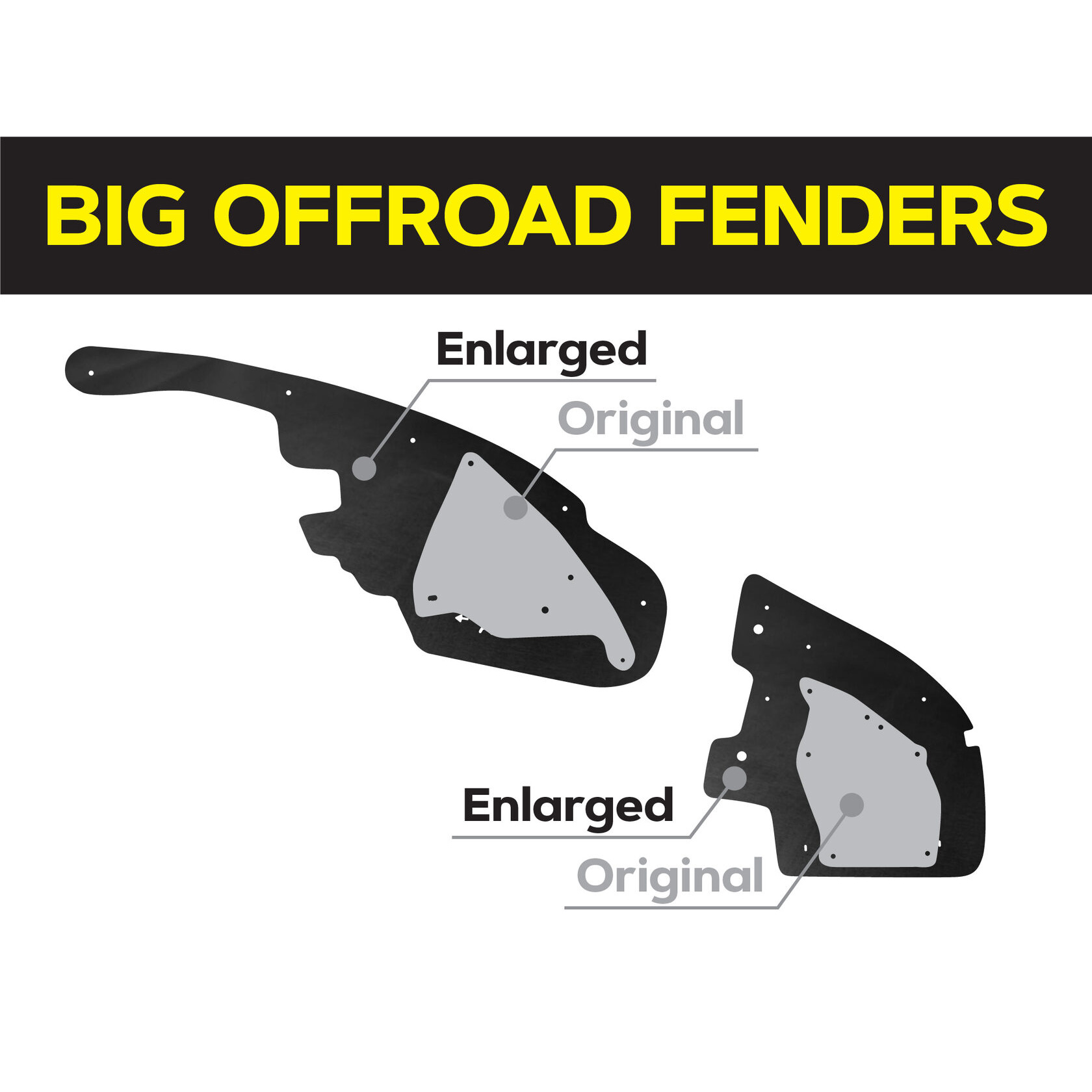 • Площа посиленого брудозахисту значно більша за штатний, що дозволяє йому ефективно захищати не тільки моторний відсік, але й важливе електрообладнання від пилу, бруду, води, гілок, дрібних каменів та інших сторонніх елементів.