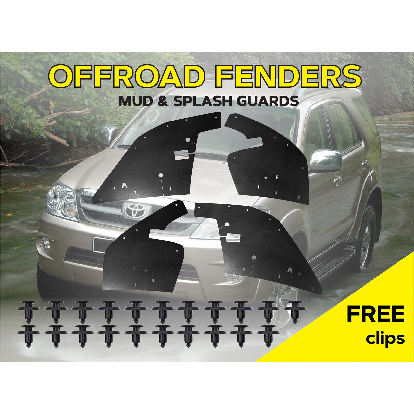 Склад комплекту: 4 посилених пильники для передніх колісних арок, монтажний набір кліпс, інструкція.