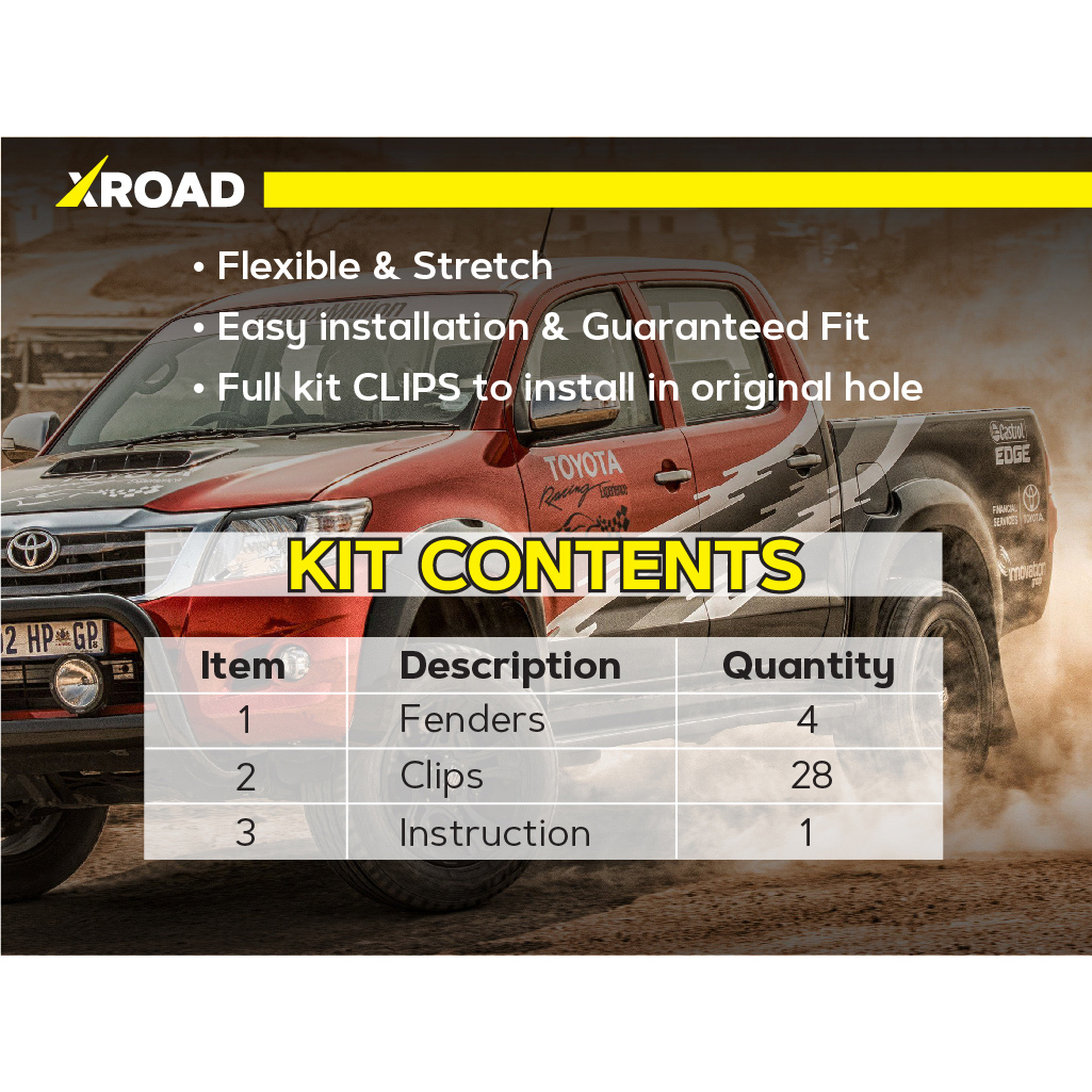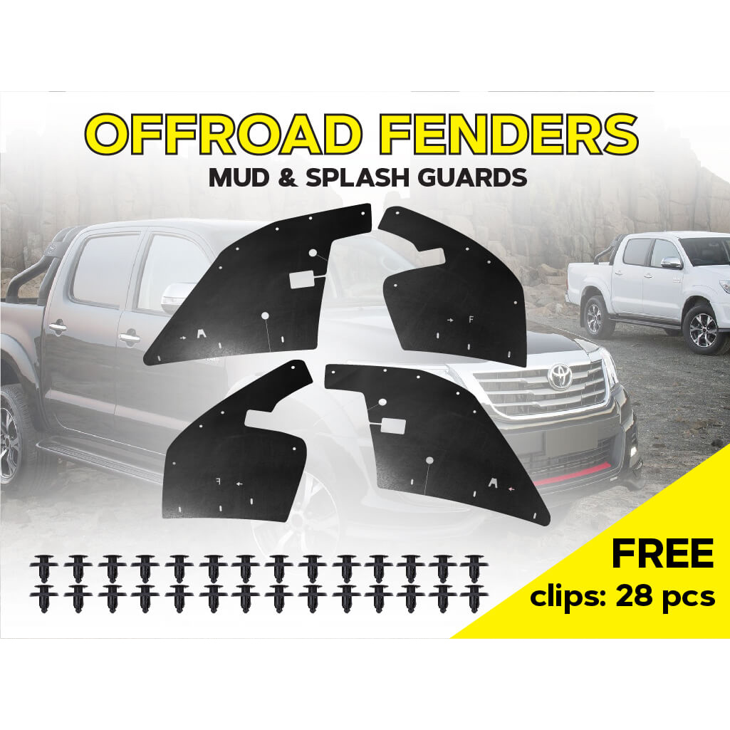 Склад комплекту: 4 посилених пильники для передніх колісних арок, монтажний набір кліпс, інструкція.