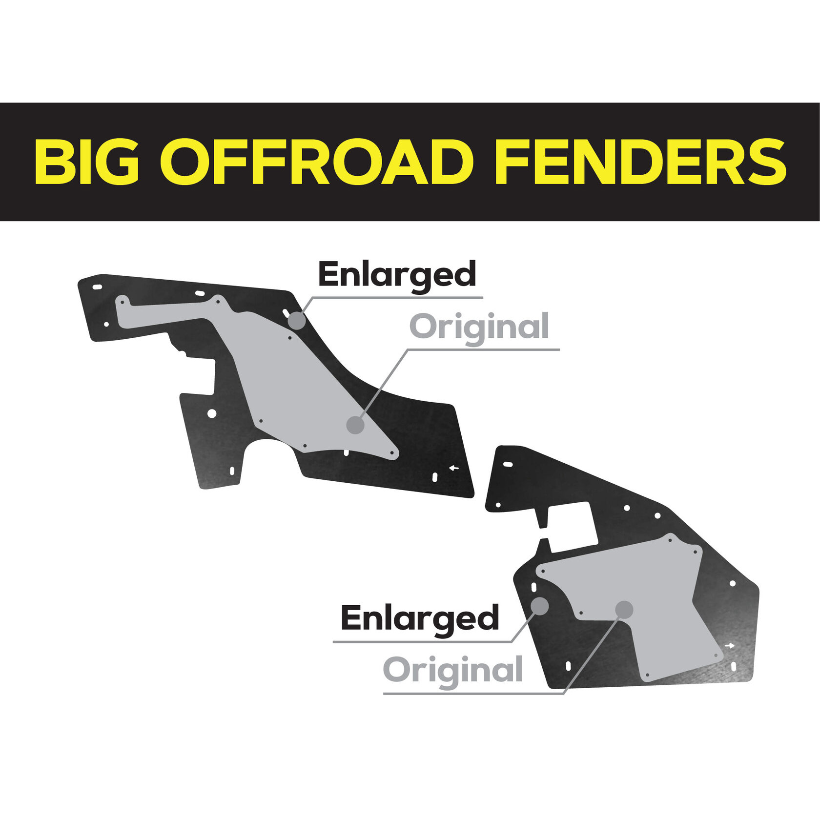 Повний комплект посиленого брудозахисту моторного відсіку для встановлення на передню вісь автомобіля. Площа посиленого брудозахисту значно більша за штатний, що дозволяє йому ефективно захищати не тільки моторний відсік, але й важливе електрообладнання, таке як генератор і стартер. Цей посилений брудозахист розроблений спеціально для експлуатації як у міських умовах, так і на найскладніших позашляхових трасах.