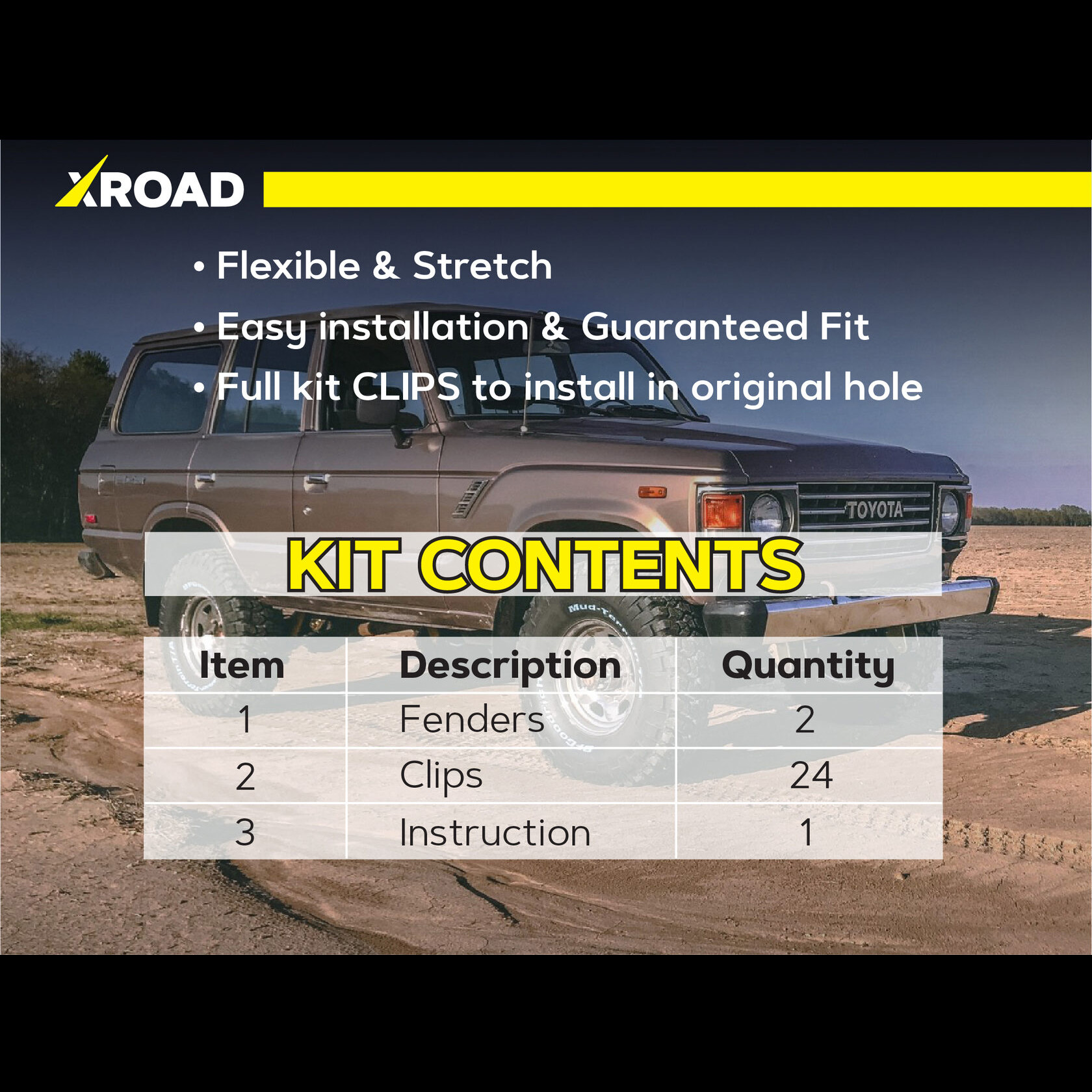 Склад комплекту: 2 посилених пильника для передніх колісних арок, монтажний набір кліпс, інструкція.