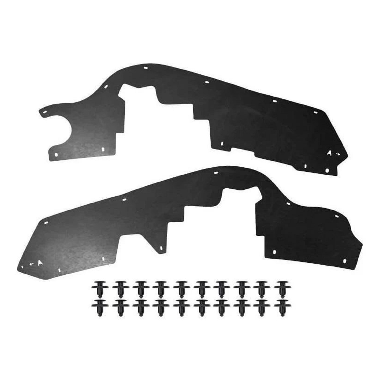 Склад комплекту: 2 посилених пильники для передніх колісних арок, монтажний набір кліпс, інструкція.