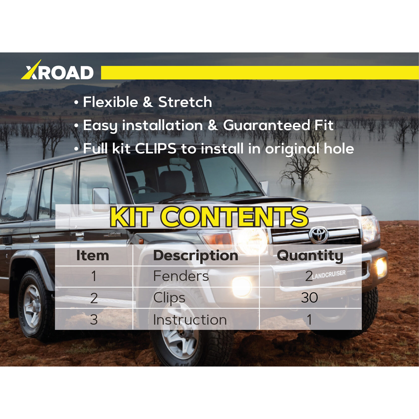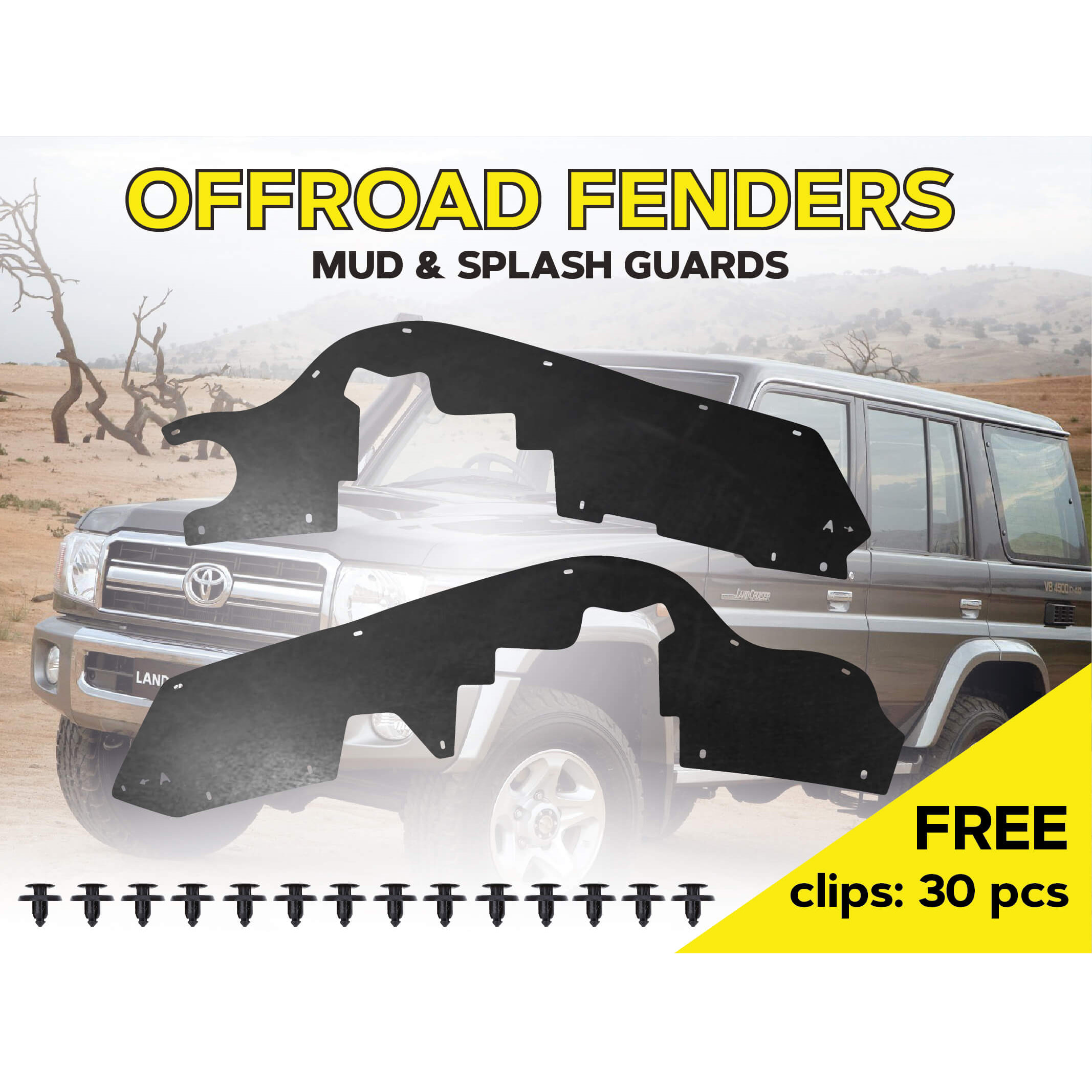 Цей комплект посиленого брудозахисту призначений для встановлення на автомобіль: Toyota Land Cruiser 70 (1997-т.ч.)