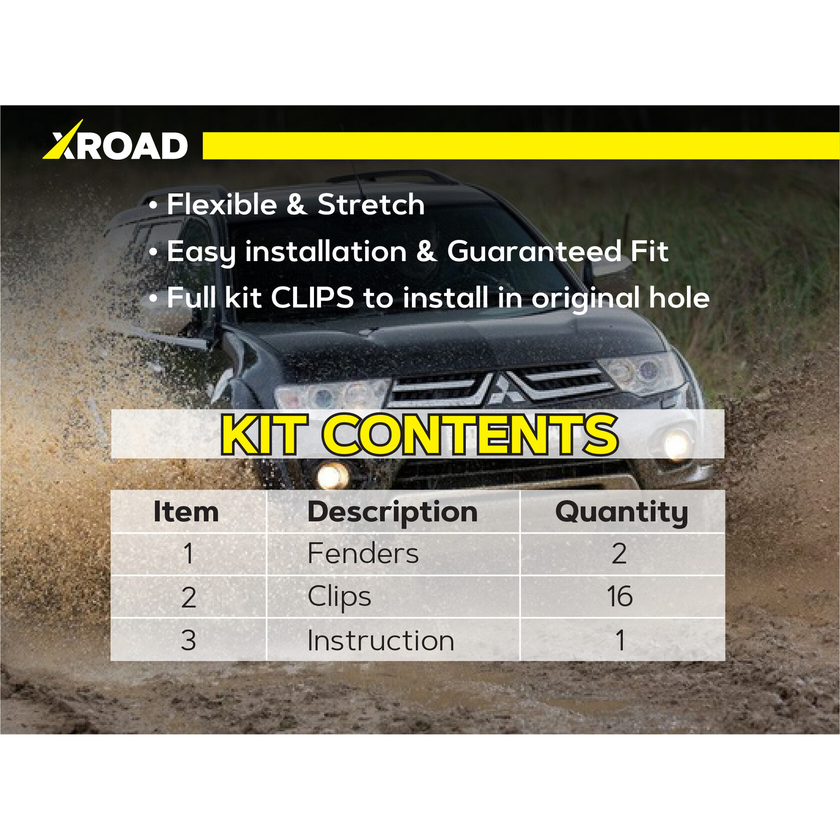 Склад комплекту: 2 посилених пильники задніх колісних арок, монтажний набір кліпс, інструкція.