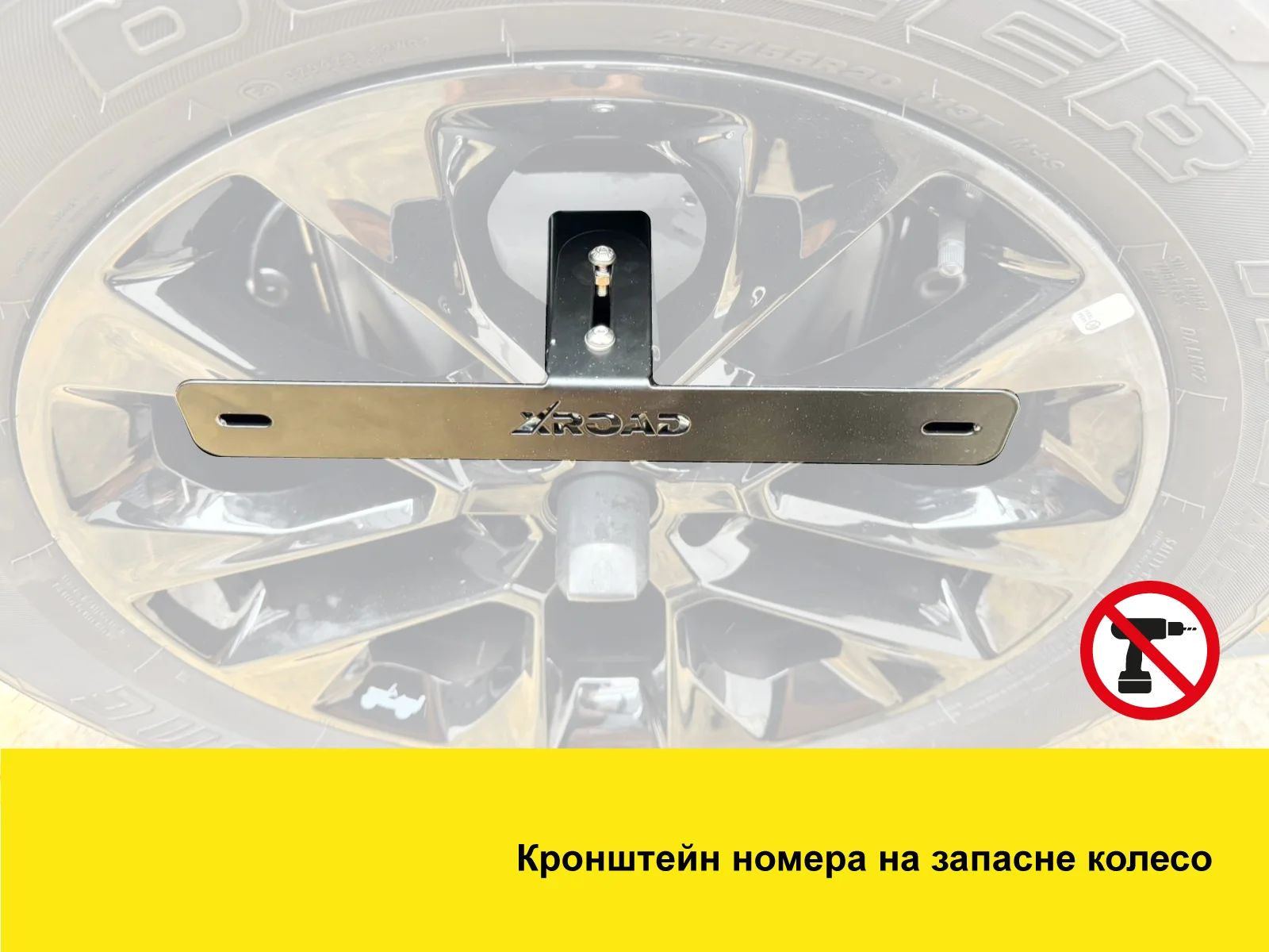 Монтаж кронштейна не вимагає свердління кузова або будь-яких інших змін в конструкції автомобіля. Він фіксується за рахунок кріплення самого запасного колеса, що робить установку швидкою та простою.