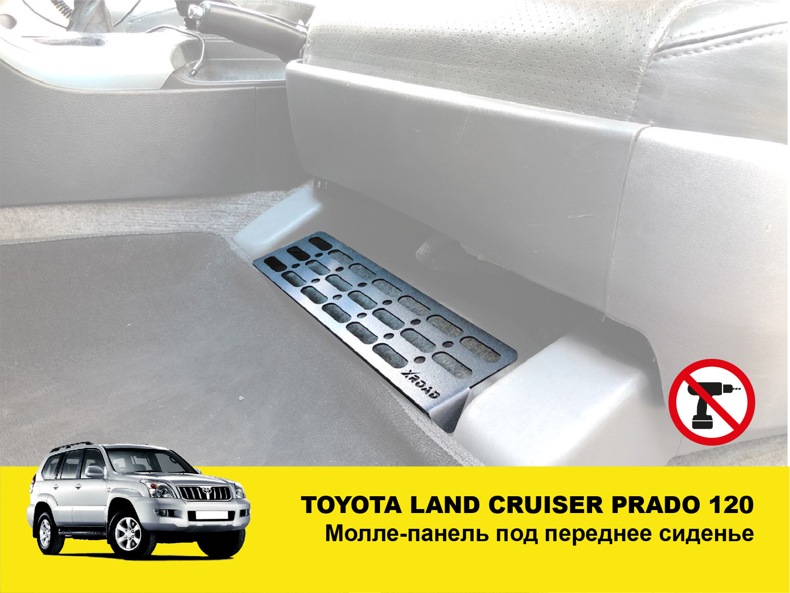 Кріплення встановлюється bolt-on під передні “ніжки” сидінь. Панель виконана у форматі молле-органайзера, що дозволяє кріпити вогнегасник, аптечку, ліхтарик, ніж, армійські підсумки та інше.