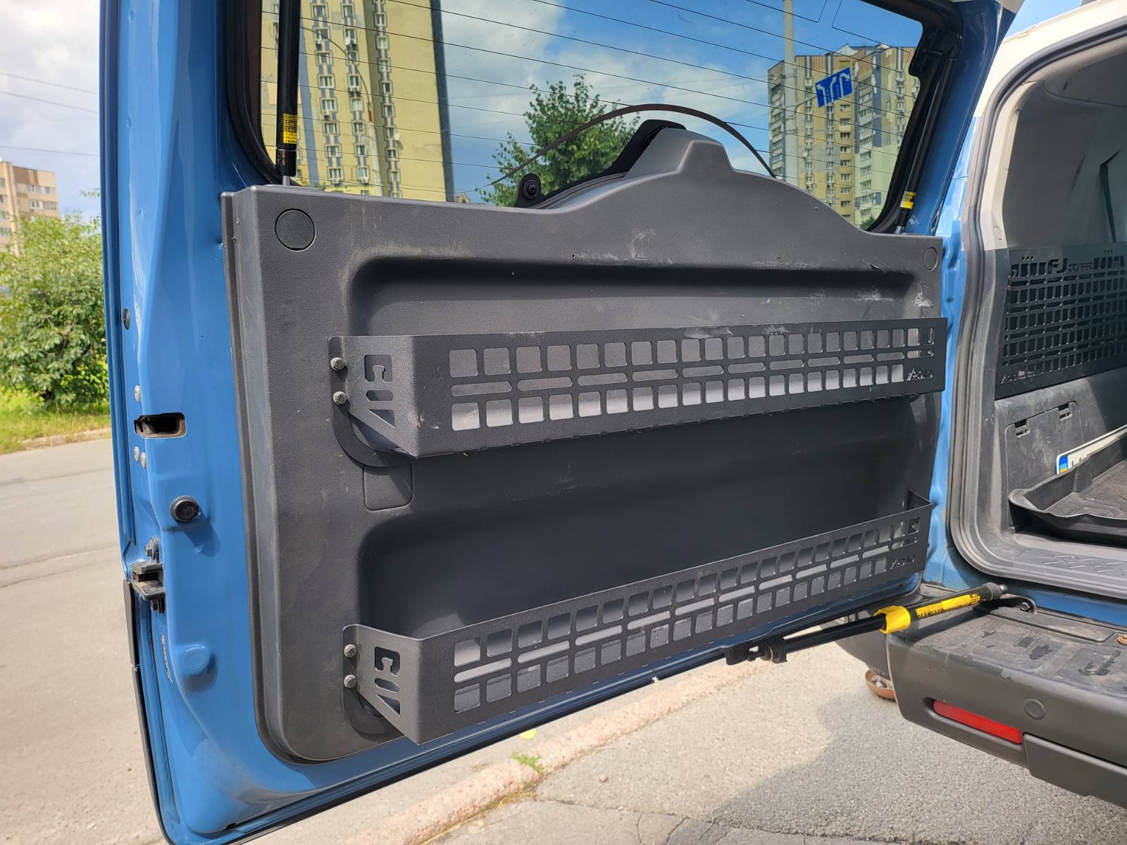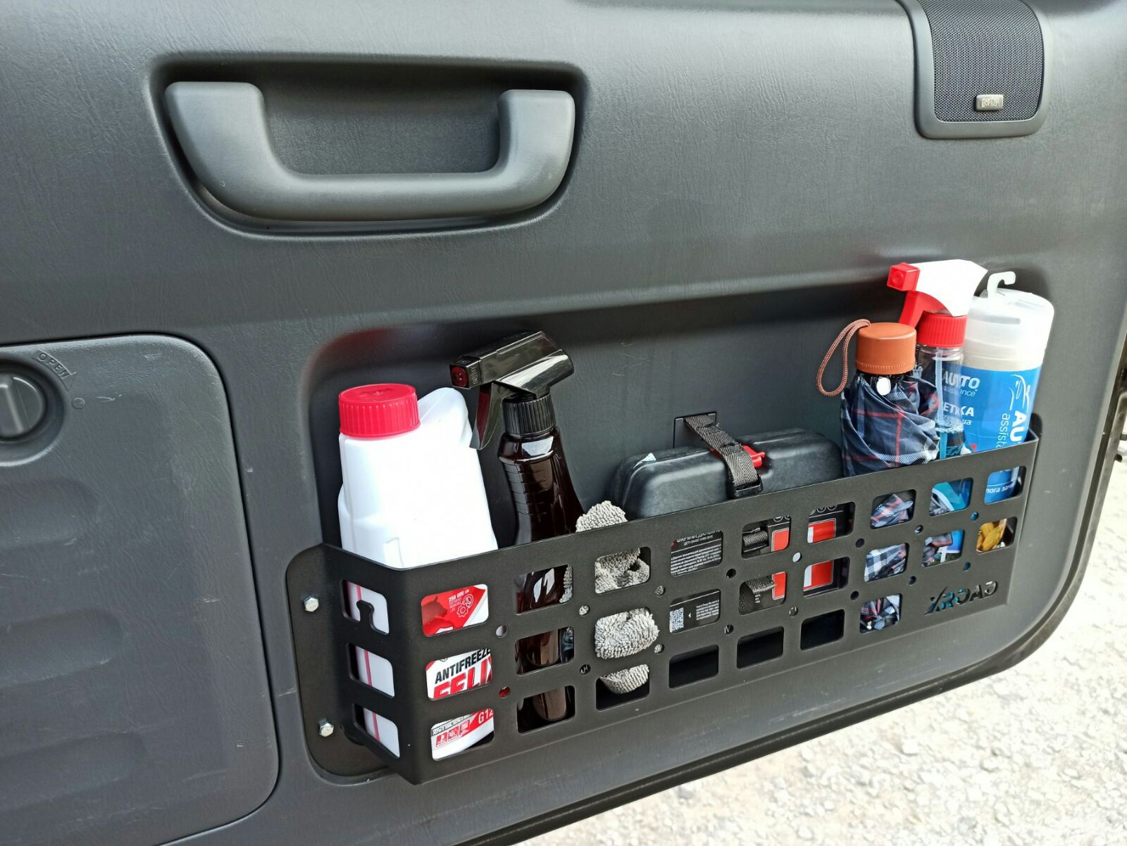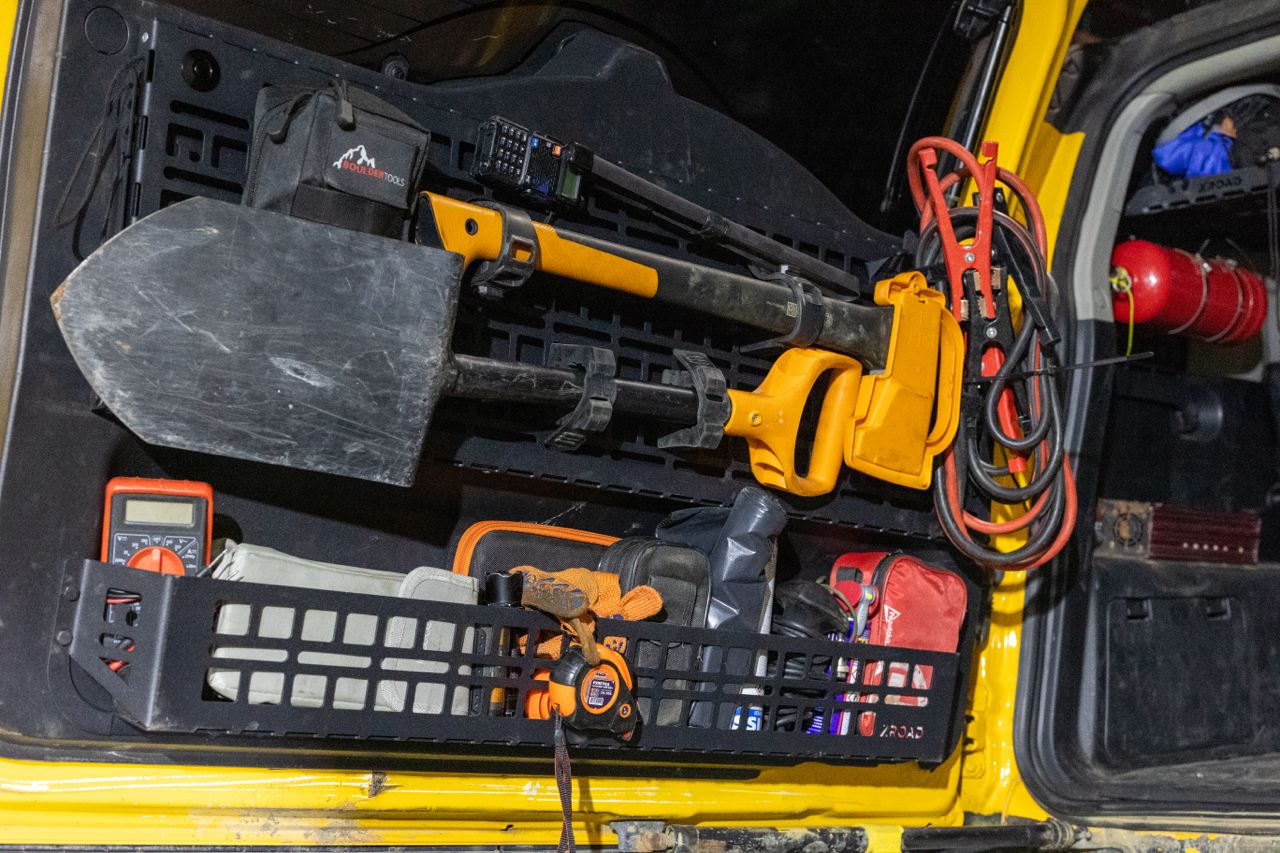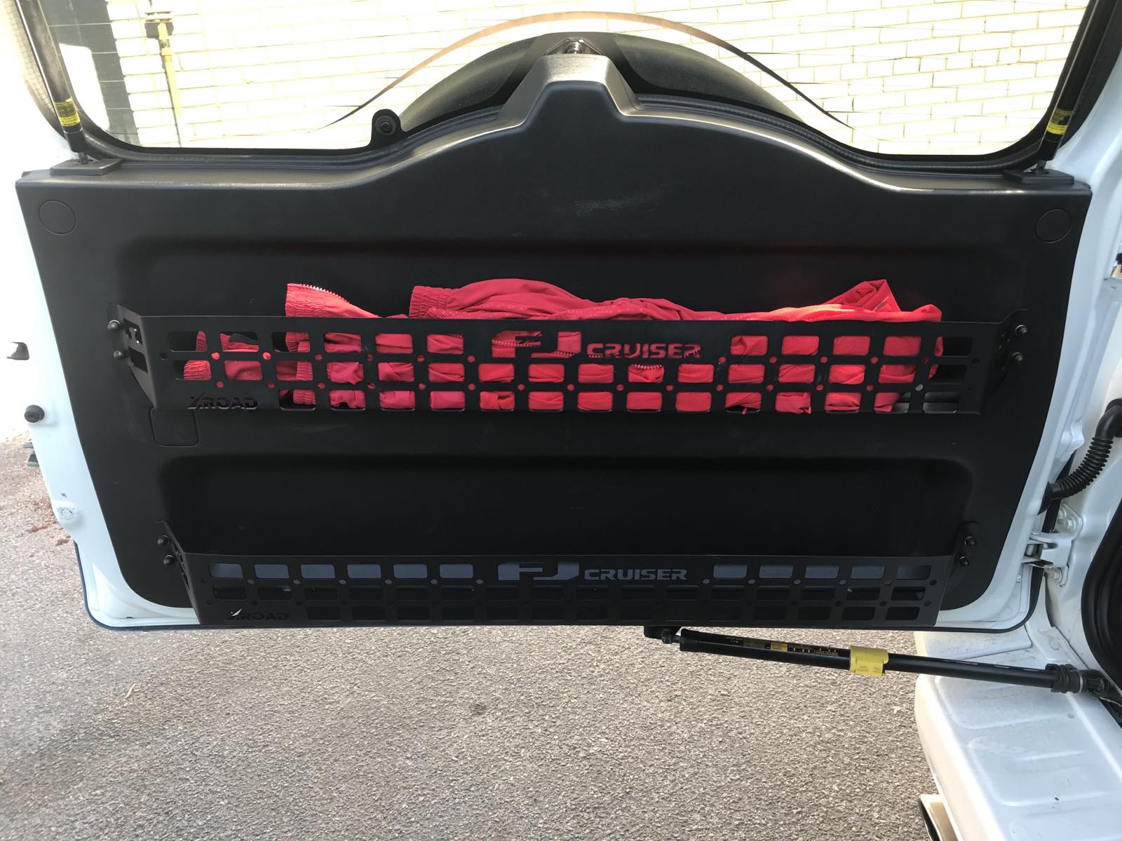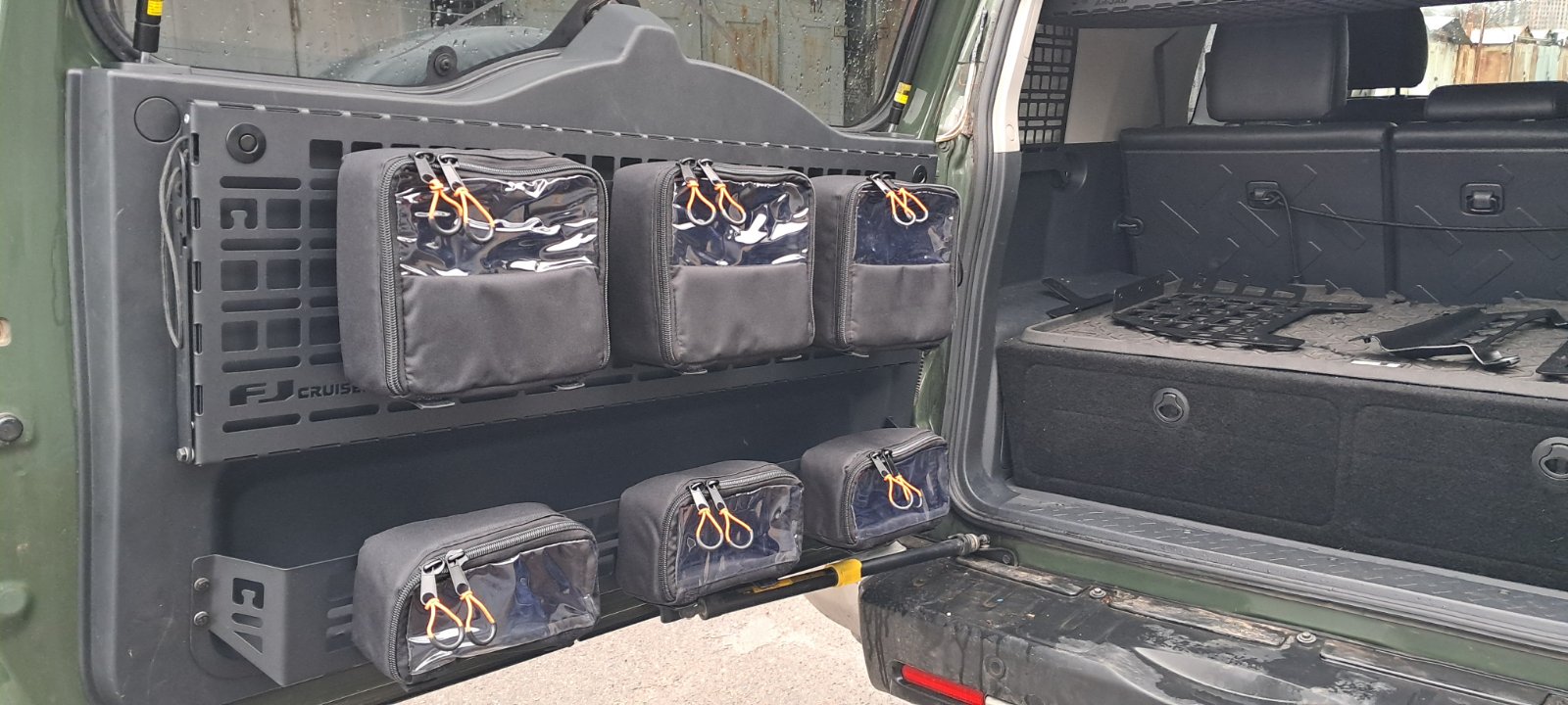 Так мало ніш та кишень у легендарного FJ Cruiser. І обшивка дверей багажника також без місць для зберігання речей. Відмінним вирішенням проблеми є встановлення додаткових органайзерів. ЗВикористання функціоналу молле-панелі дає можливість для зовнішнього розміщення підсумків та інструментів.