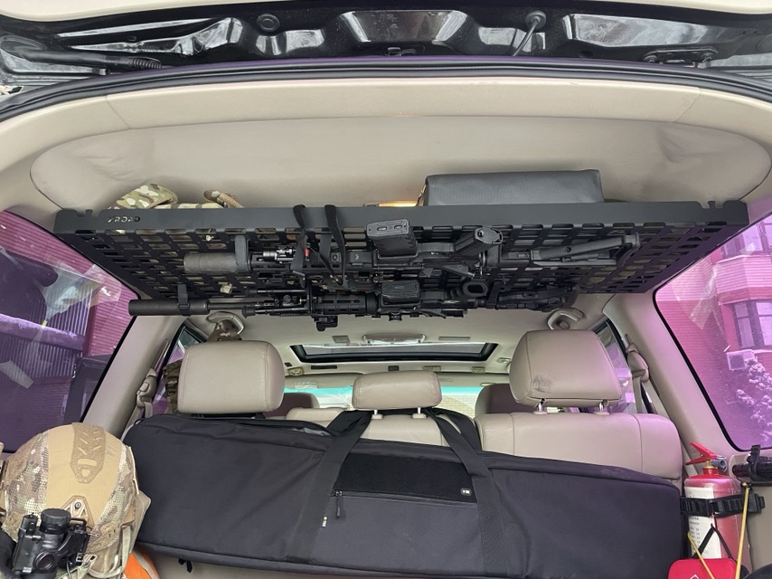 Полиця виконана у форматі молле-панелі, що дозволяє кріпити тактичне спорядження, зброю або інструменти за допомогою різних систем кріплення.