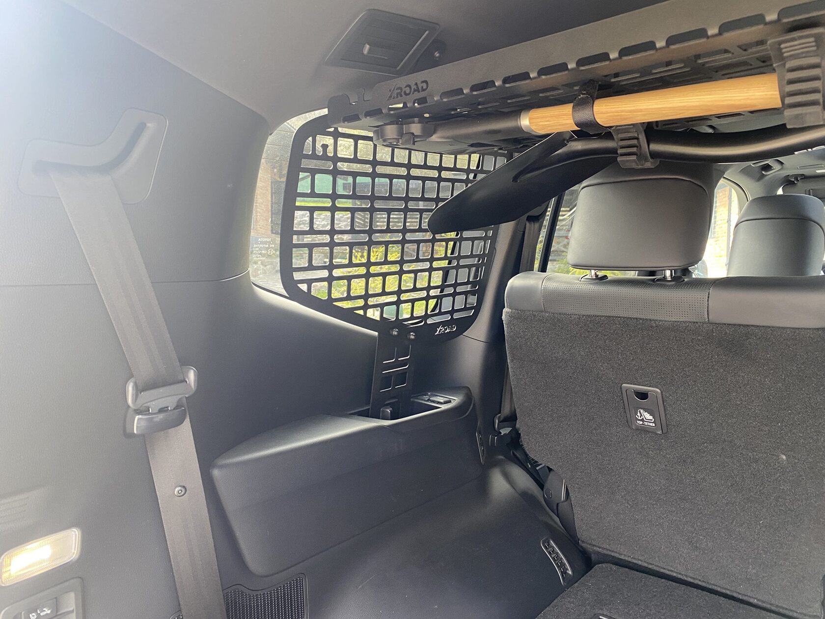 Конструкція полиці дозволяє кріпити необхідні речі до полиці не тільки зверху, а й знизу, тим самим забезпечуючи додаткове місце зберігання в багажнику. Розмір молле-вікон стандартний, що дозволяє кріпити типове армійське спорядження. Круглі отвори дозволяють кріпити гумові стропи, клепальні гайки та підходять для універсальних гумових кріплень QuickFist.