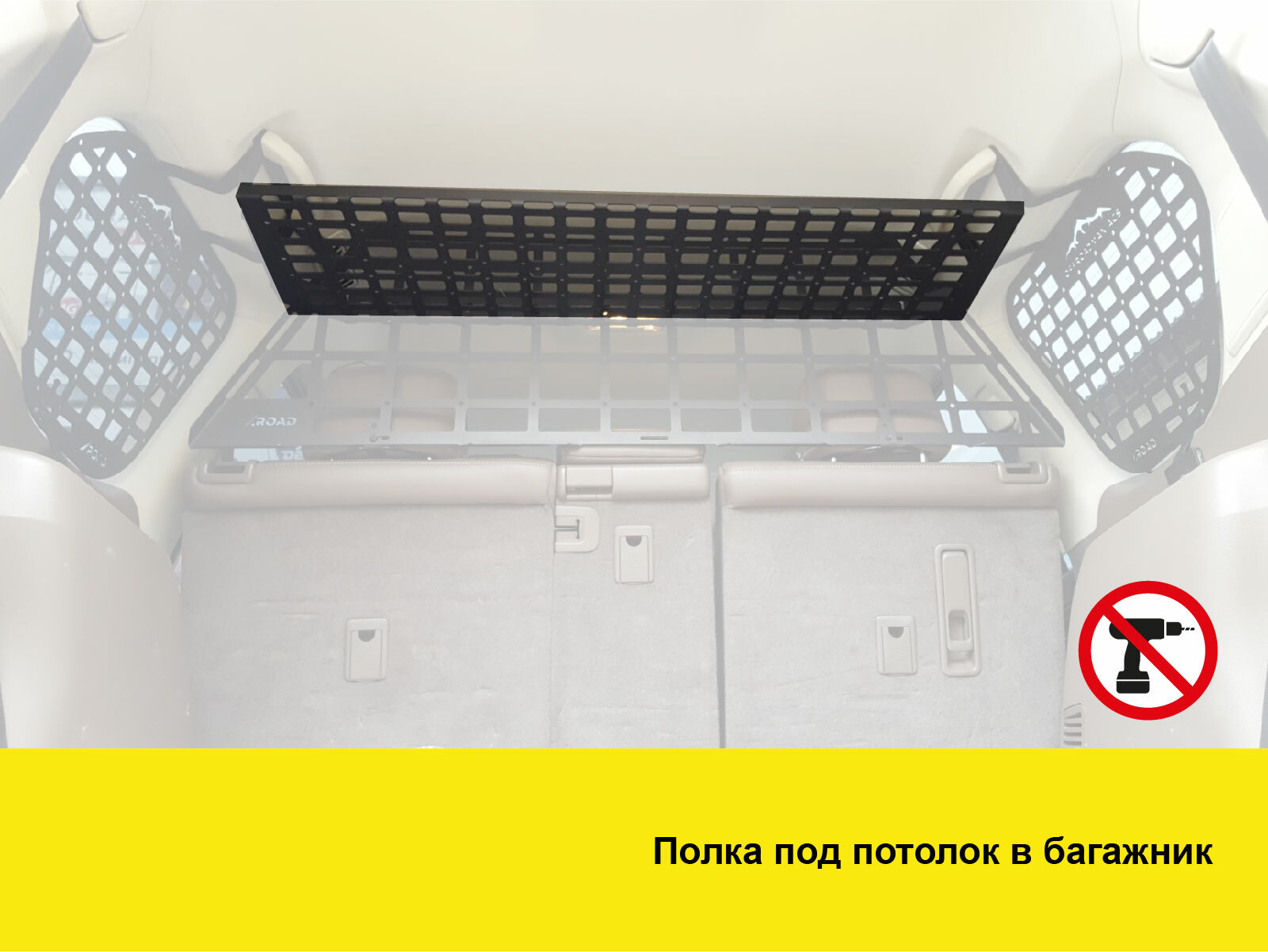 Монтаж полиці не вимагає свердління деталей автомобіля, що забезпечує швидке та просте встановлення. Ви зможете встановити полицю самостійно без допомоги спеціалістів. Встановлення передбачає можливість регулювання полиці не тільки за висотою, а й по поздовжньому положенню – її можна змістити ближче до передньої або задньої частини автомобіля