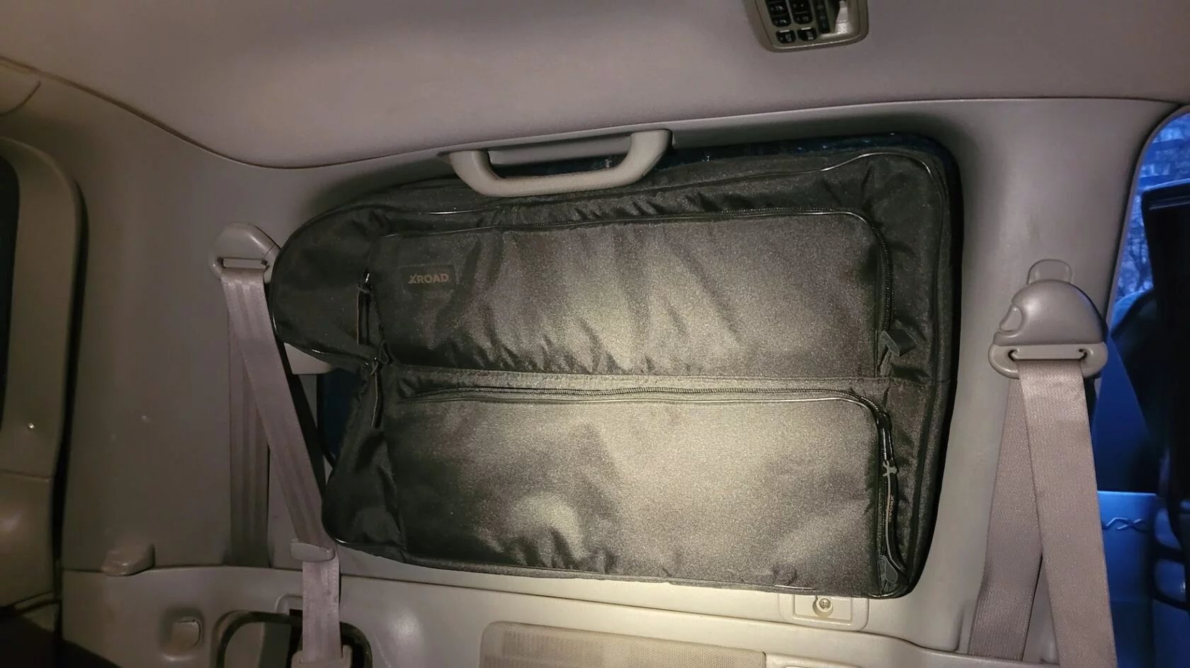 - Органайзер кріпиться швидко та без будь-яких втручань у обшивку автомобіля – зверху за кріплення для ручки та по периметру вікна гачками за пластик.