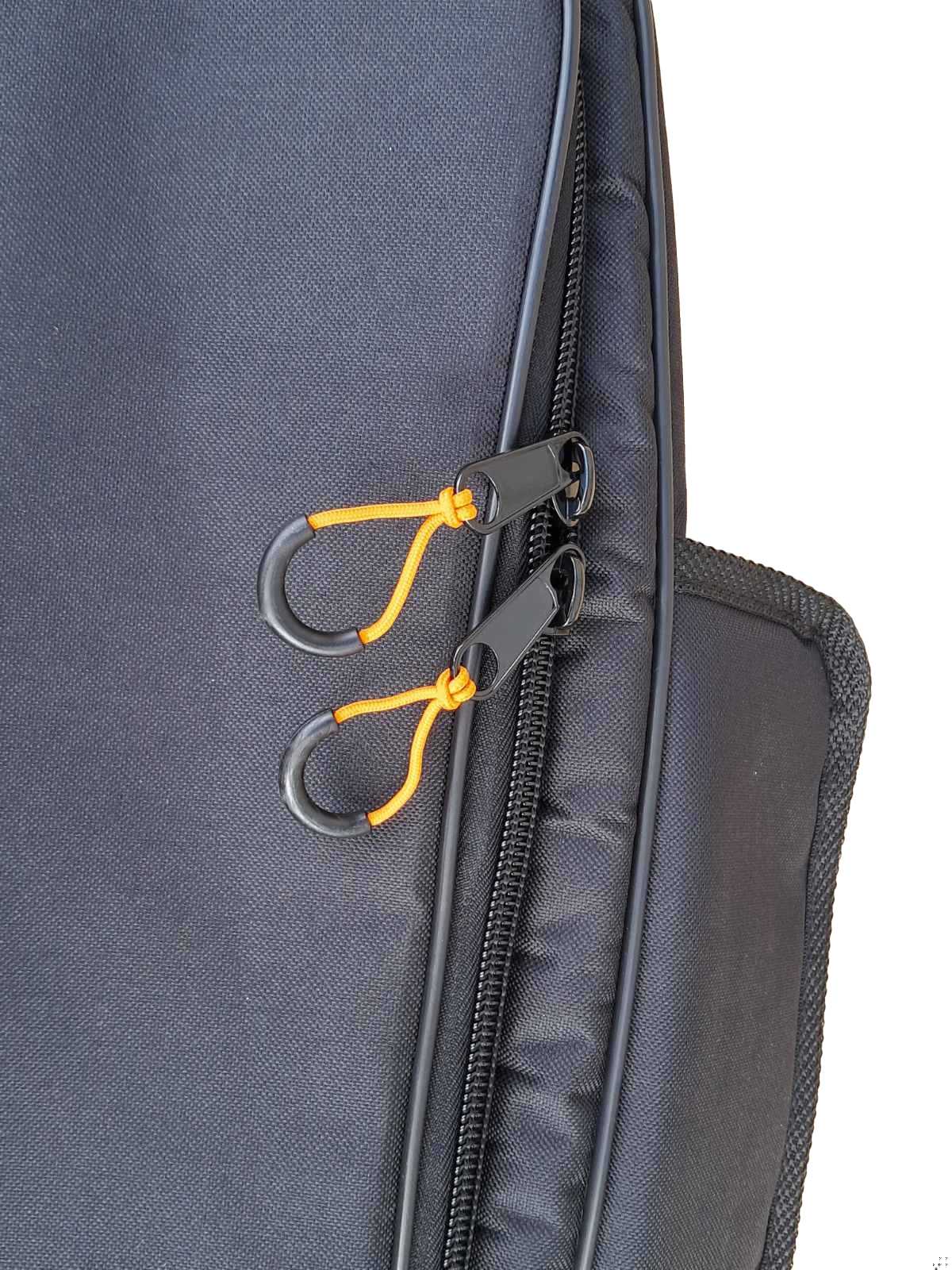 - Має два незалежні відділення, на клапанах усередині розташовані додаткові кишені на блискавках для зберігання дрібних предметів.