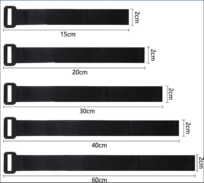Багаторазова стрічка-ремішок на текстильній липучці велкро (velcro) з пластиковим кільцем забезпечує швидку, міцну та зручну фіксацію. Має широкий спектр застосування: застосовується для стягування та кріплення багажу, інструментів, похідного інвентарю, стягування дротів тощо. Довжину стяжок можна масштабувати у будь-яких кількостях, прикріплюючи їх одна до одної.