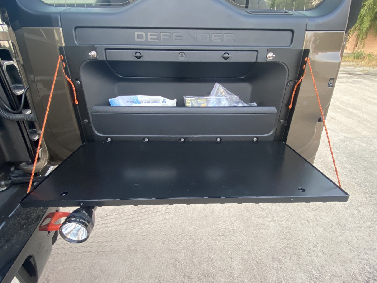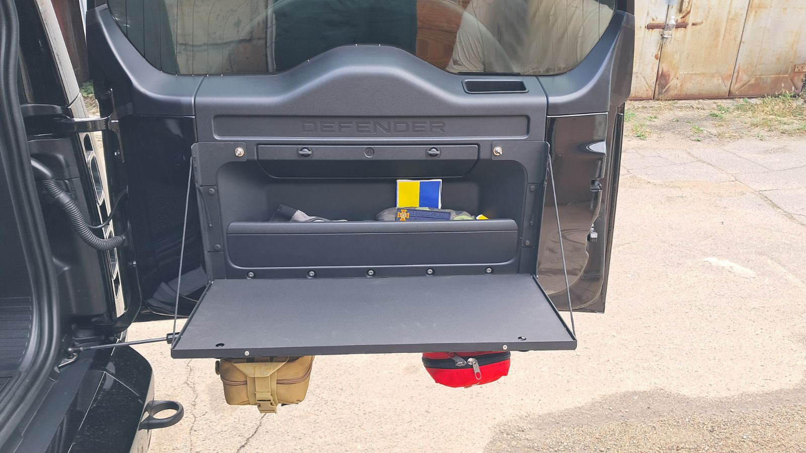 В складеному стані стіл виконаний в форматі моллє-панелі, що дозволяє розміщувати тактичне спорядження, зброю або інструменти за допомогою різних систем кріплення. Розмір молле-вікон стандартний для кріплення типового армійського спорядження. Круглі отвори дозволяють кріпити гумові стропи, клепальні гайки та підходять для універсальних гумових кріплень QuickFist.