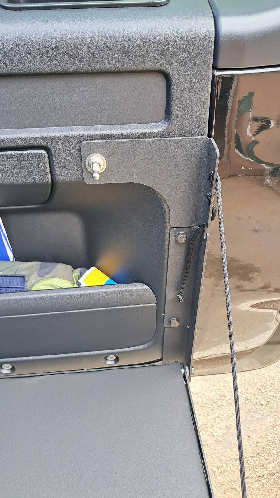 Гнучкі і безшумні петлі забезпечють швидке регулювання кута розкриття столу в горизонтальну площину з урахуванням рельєфу місцевості, на якій стоїть автомобіль.