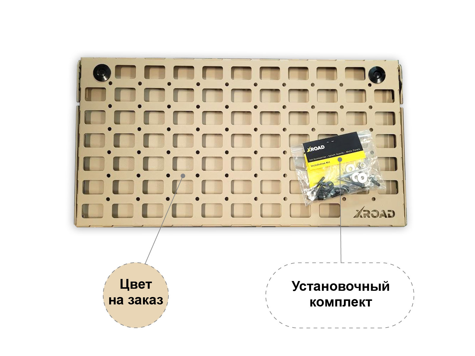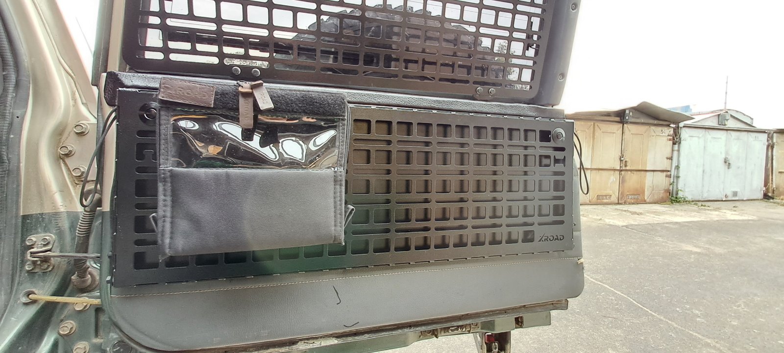 - В складеному стані стіл виконаний в форматі моллє-панелі, що дозволяє розміщувати тактичне спорядження, зброю або інструменти за допомогою різних систем кріплення.