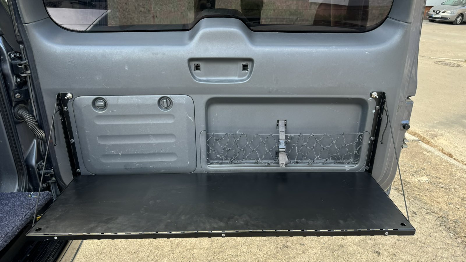 - З’ємна версія столика має два варіанти його використання – стіл розкладається безпосередньо на дверях багажника або повністю знімається з дверей багажника. Коли столик повністю знятий з дверей багажника, на них залишається моллє-панель з прикріпленими до неї підсумками і інструментами.