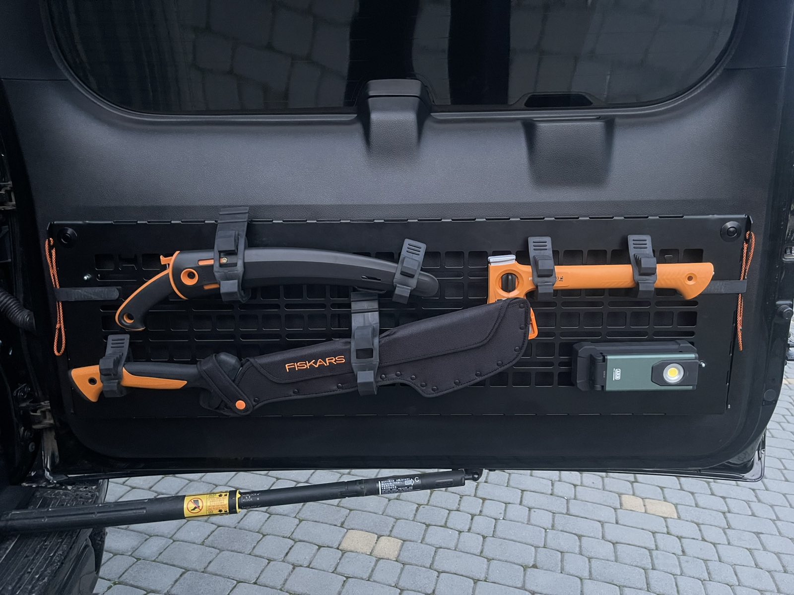 Стандартна система отворів сумісна з більшістю військових і туристичних кріплень. Це дозволяє максимально ефективно використовувати внутрішню частину дверей багажника GX470 або Pajero Wagon і підтримувати порядок у поїздках.