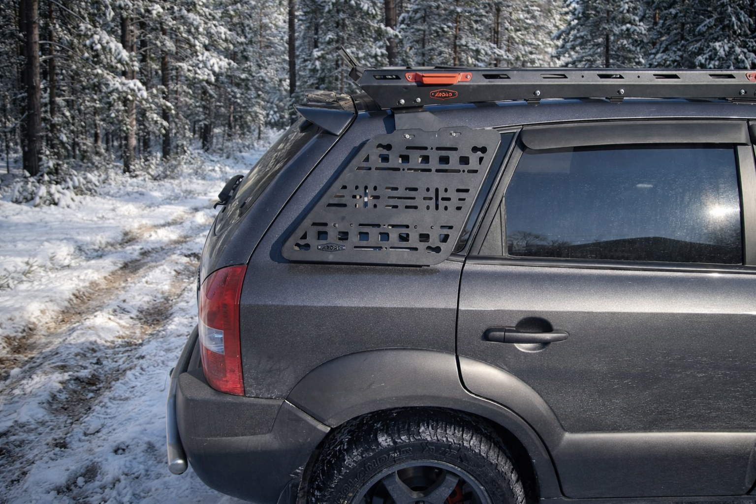 Зовнішня молле панель. Дозволяє організувати додаткове місце для інструменту, каністр, сендтраків, не займаючи при цьому основний простір багажника. Спроектована для використання як у міських умовах, так і для складних дорожніх подорожей.