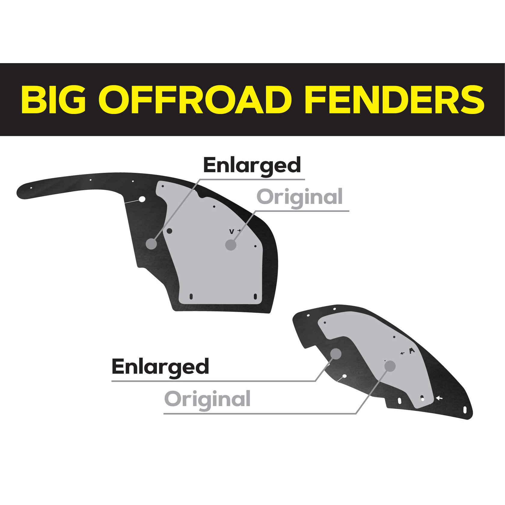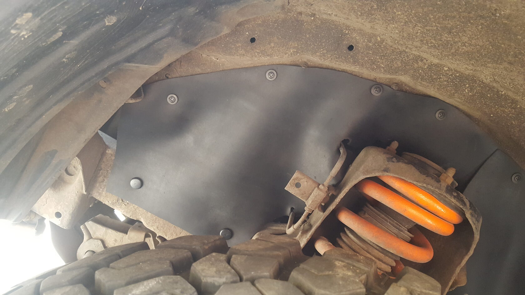 Повний комплект посиленого брудозахисту моторного відсіку для встановлення на передню вісь автомобіля. Площа посиленого брудозахисту значно більша за штатний, що дозволяє йому ефективно захищати не тільки моторний відсік, але й важливе електрообладнання, таке як генератор і стартер. Цей посилений брудозахист розроблений спеціально для експлуатації як у міських умовах, так і на найскладніших позашляхових трасах.